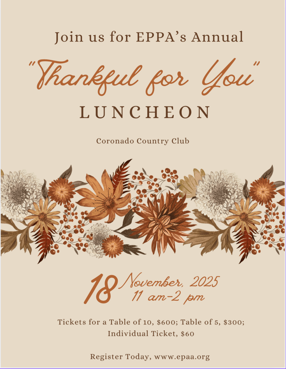 EPAA "Thankful For You" Annual Luncheon - Coronado Country Club 11/18 11a - 2p Friday